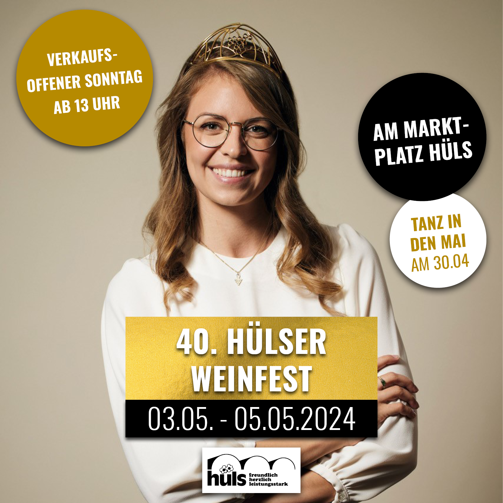 Wir wünschen der Werbegemeinschaft Hüls, den Winzern und allen Kaufleuten ein erfolgreiches Weinfest!